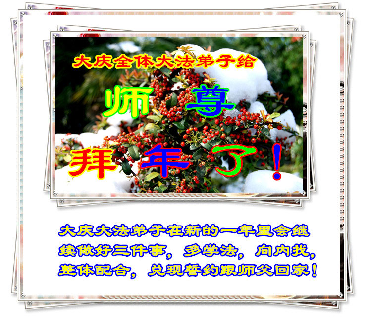 弟子盼望早日见到师父!弟子合十!叩谢师恩! 黑龙江省大庆全体大法弟子恭祝慈悲伟大的师尊新年快乐!