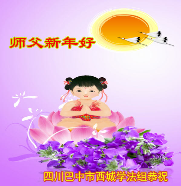 师尊拯救苍宇间, 末法末劫大法传, 弟子有缘修大法, 精進实修随师还。 四川巴中市西城学法组大法弟子恭祝慈悲伟大师尊新年快乐!师父新年好!