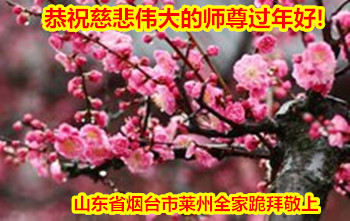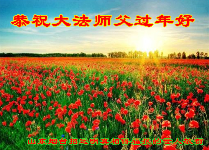 师父过年好!感谢师父救度我们,谢谢伟大的大法,伟大的师父!给师父磕头。 山东烟台招远明真相得福报的世人恭祝大法师父过年好!