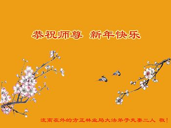 师父,您辛苦了,弟子们祝您新年快乐! 山东省胜利油田三个学法小组全体大法弟子敬上 流离在外的方正林业局大法弟子夫妻二人恭祝师尊新年快乐!