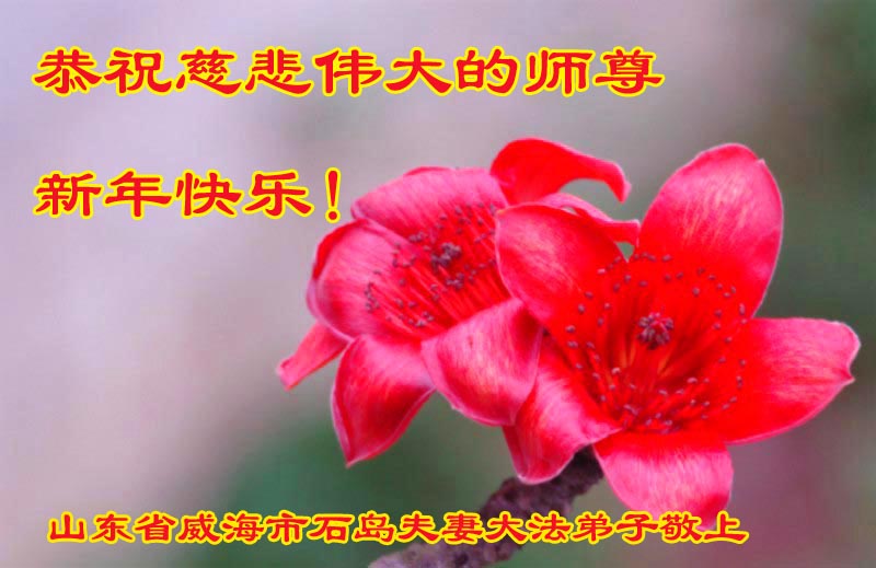 山东省威海市石岛夫妻大法弟子恭祝慈悲伟大的师尊新年快乐!