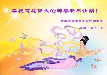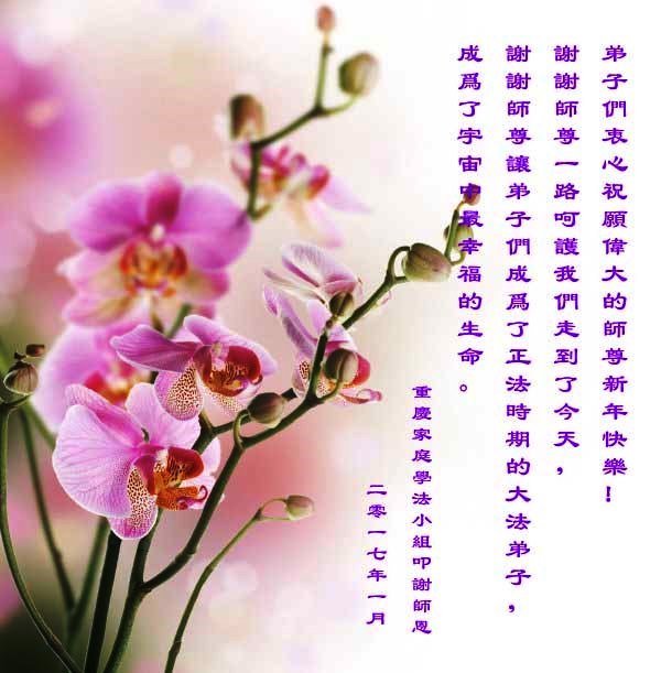 弟子们衷心祝愿伟大师尊新年快乐!谢谢师尊一路看护我们走到了今天,谢谢师尊让弟子们成为了正法时期的大法弟子,成为了宇宙最幸福的生命。 重庆一学法组恭祝师尊新年快乐!