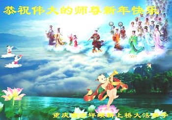 恭祝慈悲伟大的师尊新年快乐! 重庆沙坪坝区一学法组敬祝师父新年快乐!