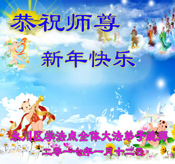 潍坊市潍城区一老年学法组弟子给师尊拜年! 恭祝师尊过年好! 江苏省淮安市全体大法弟子恭祝师尊新年快乐!