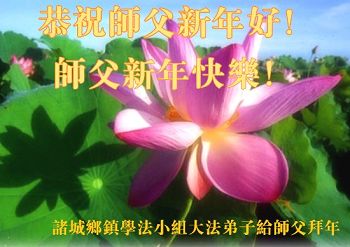 山东省潍坊市诸城市乡镇学法小组大法弟子给师父拜年!