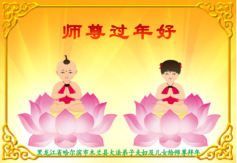 黑龙江省哈尔滨市木兰县大法弟子夫妇及儿女恭祝师尊过年好!
