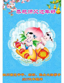 四川南充爷爷、奶奶、孙子三大法弟子恭祝师父新年快乐!