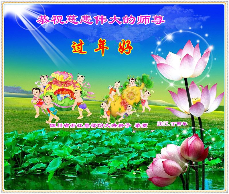 四川省达州市开江县全体大法弟子恭祝慈悲伟大师尊新年快乐!
