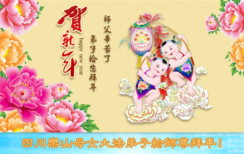 四川乐山母女大法弟子给师尊拜年!师父新年好!