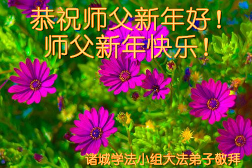 师父您好! 新年来临之际,我们学法小组全体大法弟子给师父拜年。祝师父新年快乐!万事如意! 同时,在新的一年里,我们要做好三件事,听师父的话,共同精進,多救人,让师父多一份欣慰,少一份操劳。 山东诸城大法弟子 山东省潍坊市诸城市老年大法弟子给师父拜年!