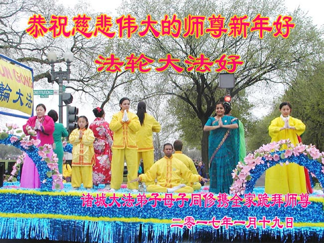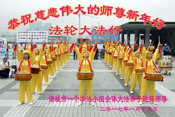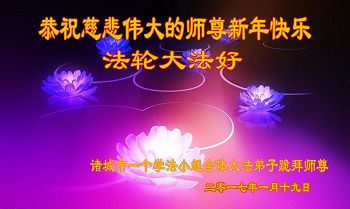 师尊啊,在您的佛光沐浴下,我们又迎来了二零一七年。在这万象更新的一年里,我们学法小组弟子会更加用心做好三件事,来兑现我们的誓约,报答师尊的救度之恩!弟子跪拜师尊!弟子给师尊磕头!! 山东潍坊寒亭一学法小组大法弟子给师尊拜年!恭祝师尊新年快乐!
