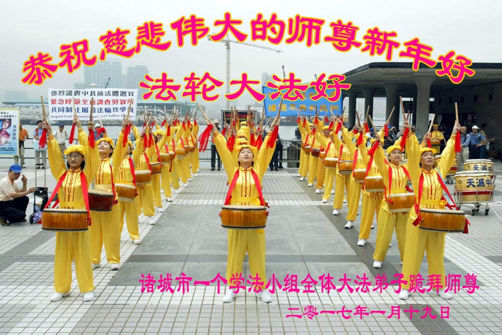 新年来临之际,我们八人学法小组向慈悲伟大的师父拜年,祝师父新年快乐! 我们学法小组谨遵师尊教诲,互相配合,互相督促,比学比修,努力做好三件事,讲好真相多救人,共同精進,以报师恩。 山东诸城大法弟子 山东省潍坊市诸城市学法小组全体大法弟子给师父拜年!