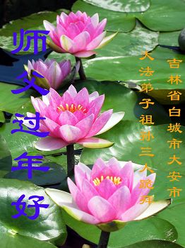 师尊您好!在这新年合家欢聚来临之际,弟子们想念您! 没有您的慈悲呵护,弟子们哪能走到今天。今后无论多少干扰和磨难,我们都要时时刻刻以大法归正自己的一思一念,修好自己,多救人,走好今后修炼路,圆满随师还! 弟子们跪拜谢师恩!合十! 一大陆大法弟子恭祝师尊过年好!