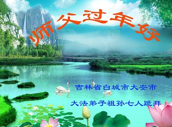 吉林省白城市大安市大法弟子祖孙七人恭祝师父过年好!