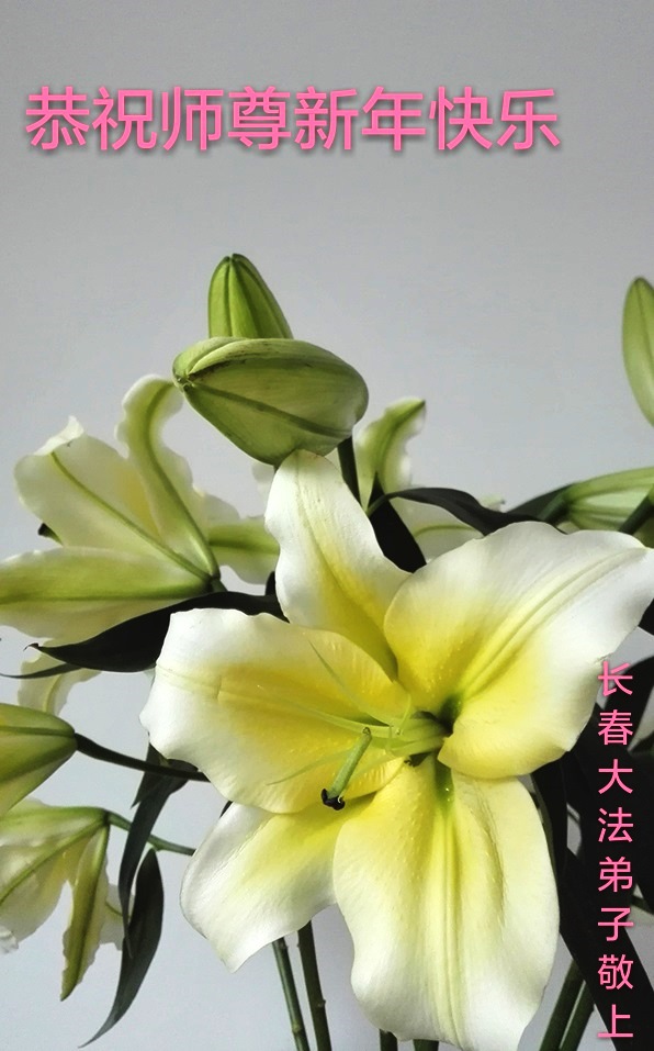 黑龙江省绥化市大法弟子及家人问候师尊!恭祝慈悲伟大的师尊新年快乐! 师父为弟子承担了一切,才使弟子在修炼这条路上少走弯路。在新的一年里弟子会更加做好三件事,救度更多众生,在正法的最后时刻做出自己应该做的。 弟子叩拜师尊 合十 吉林省长春一不争气的大法弟子敬祝师尊新年快乐!