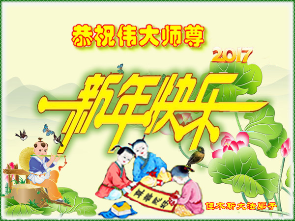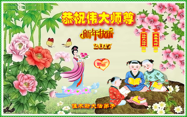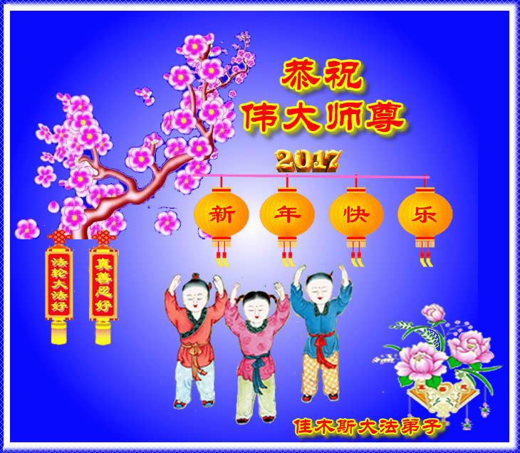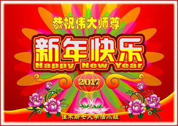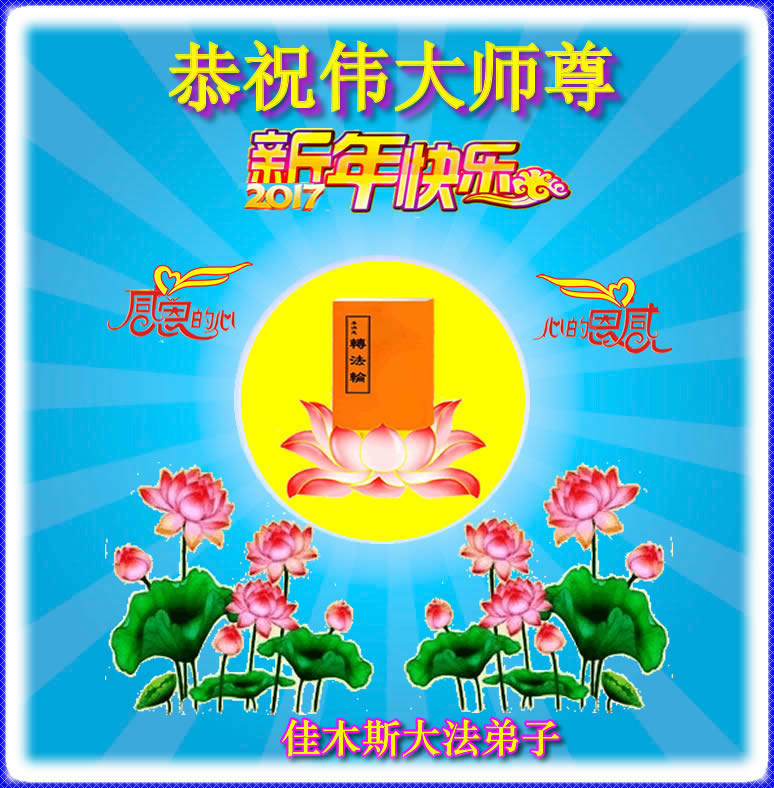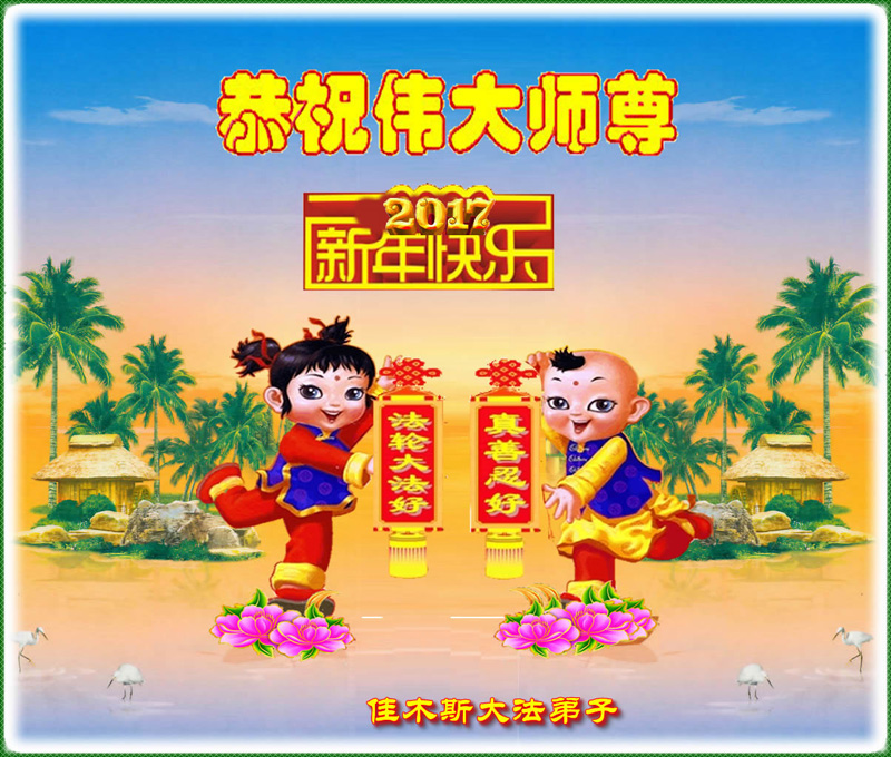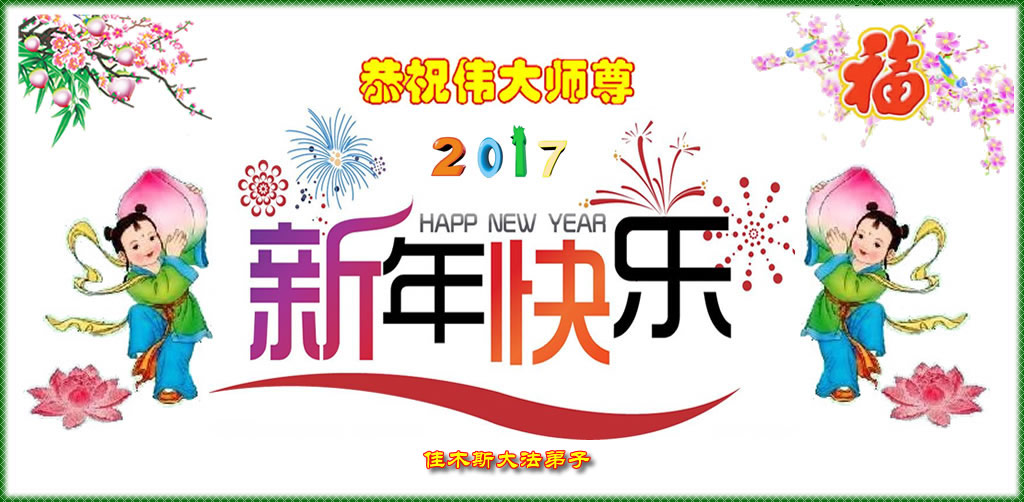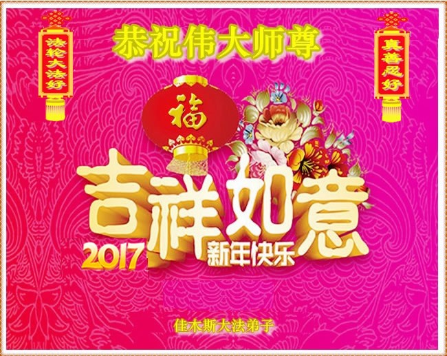二零一七年,正法人神欢。 法轮大法好,响彻天地间。 助师证实法,誓死不改言。 救众上法船,新宇已在现。 黑龙江省佳木斯大法弟子恭祝伟大的师尊新年快乐!
