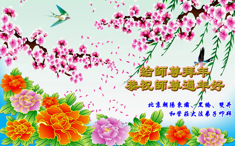 中国皇历丁酉新年即将到来,弟子给慈悲伟大的师尊拜年!弟子非常想念师尊,并谨遵师尊的教诲精進实修。向师尊合十叩拜! 北京朝阳东坝地区、黑桥地区、双井地区和管庄地区大法弟子恭祝师尊过年好!