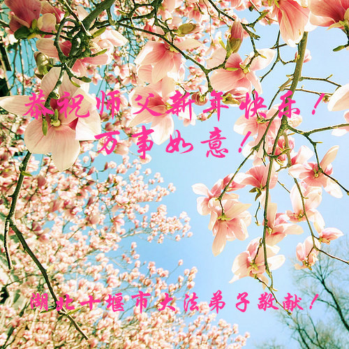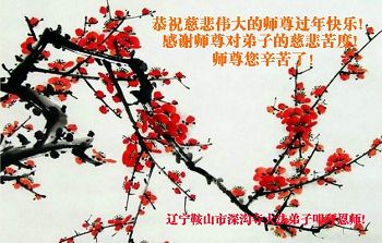 今生有缘得到师父的慈悲救度,在修炼上得到师父的时刻看护,遇到困难师父点悟,过关之时师父佑护,为了使弟子走正修炼路至今天。用尽人间语言也难表达我们的感激之情,难报师恩。 报恩 师恩深,言无尽 难报师父救度恩 万物报恩随师行 百花盛开谢天恩 弟子报恩一颗心 敬师敬法敬师尊 随师正法世间行 败物解体邪恶尽 迎接新年处处春 恭祝师尊新年好 新年快乐喜在心 天津武清区一学法小组四位大法弟子及家人恭祝师尊新年快乐!