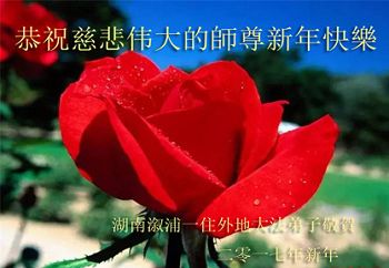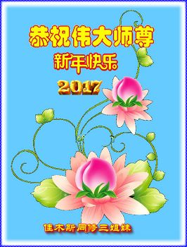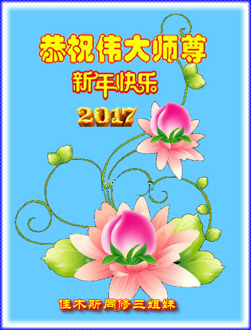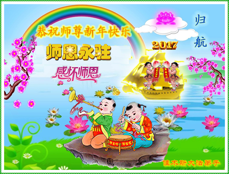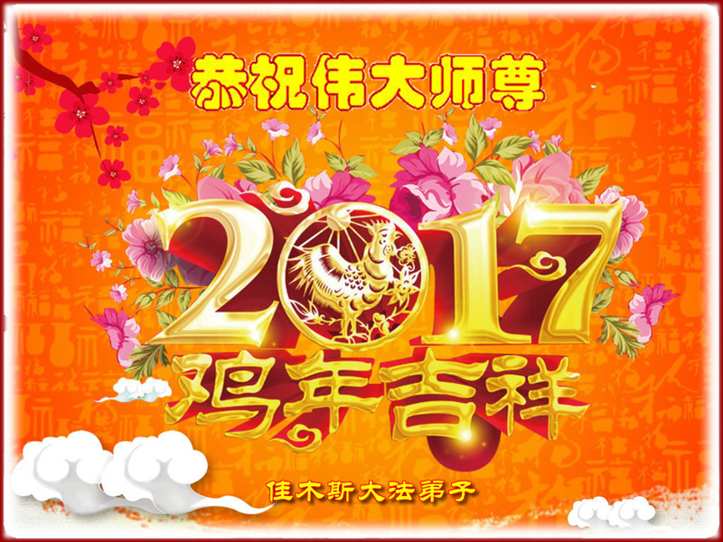 二零一七入史册, 拯救宇宙是主佛。 法正乾坤天地新, 挽救人类灭邪恶。 弟子兑现史前诺, 三件大事多多做。 大法开创新世纪, 人神恭祝师快乐! 黑龙江省佳木斯大法弟子恭祝伟大的师尊新年快乐!