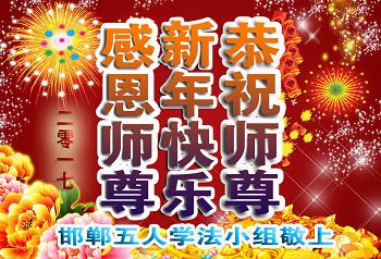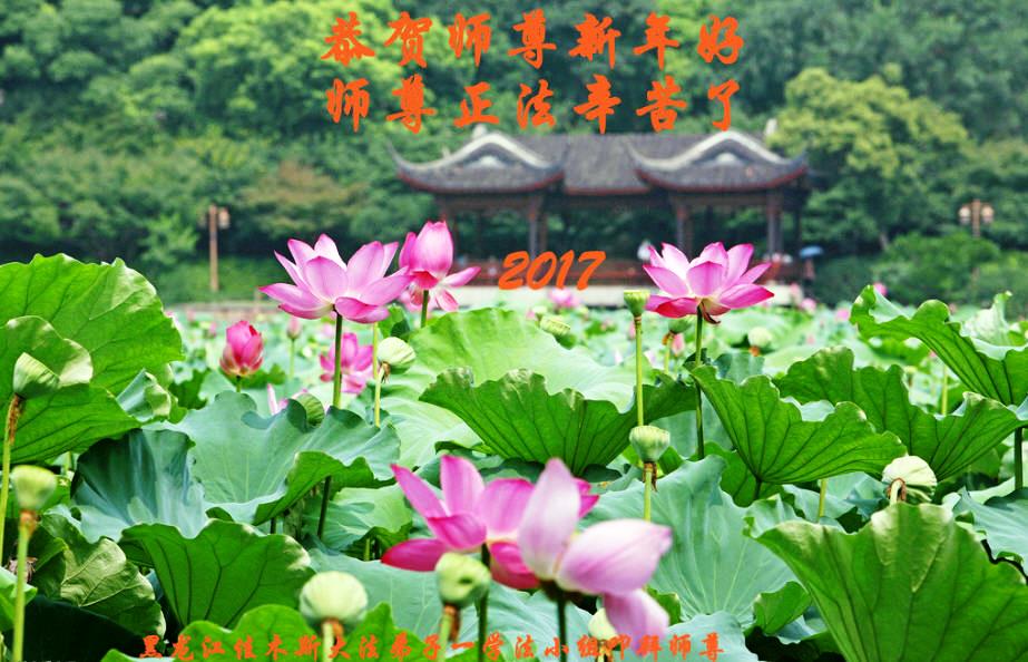 曾在地狱门口徘徊,是师尊把我们捞起来,又赋予我们回天大法,在大法修炼中,师尊又让我们渐渐神了起来。即使用尽人间所有的语言,也无法表达我们对师尊的感恩!在丁酉年来临之际,我们叩拜师尊过年好! 黑龙江佳木斯一学法小组大法弟子恭祝师尊新年好!