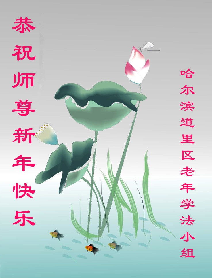 黑龙江省哈尔滨学法小组大法弟子恭祝师尊新年快乐!