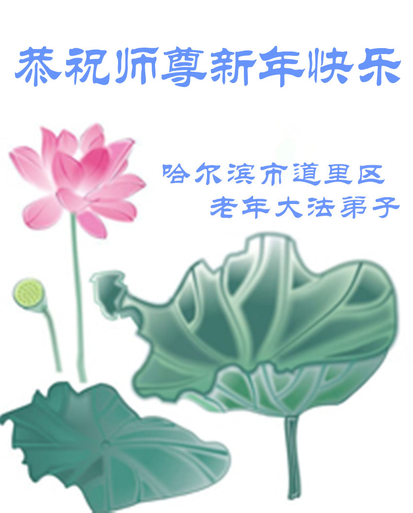 黑龙江省哈尔滨道里区老年大法弟子恭祝师尊新年快乐!