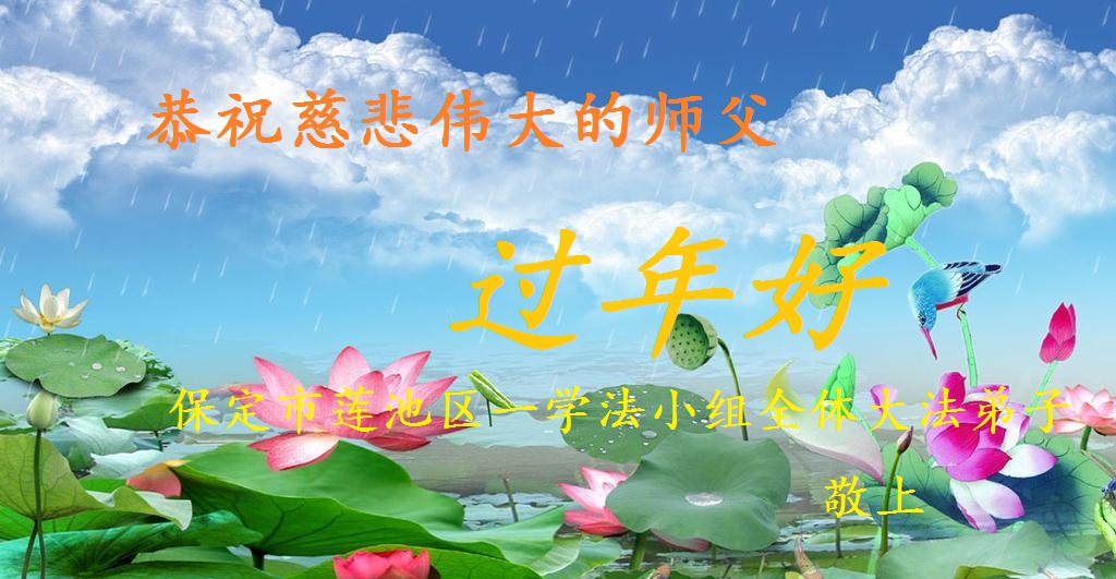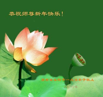 在新春佳节来临之际,首先祝贺师尊快乐!弟子无不感到一年来在慈悲伟大师尊的呵护下,有苦有乐,有收获,也有不足。在新的一年里如何能够修好自己,不辜负师尊的慈悲苦度,只有多学法、学好法,才能走正自己的修炼路,圆满随师还。 湖南省岳阳市一大法弟子恭祝师尊新年快乐!