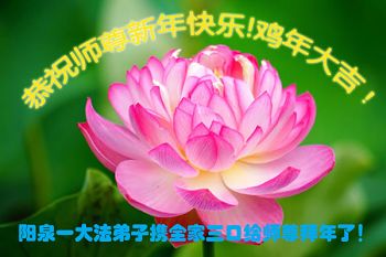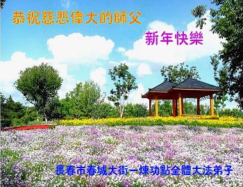 大法在世间洪传,无法用人间的语言来表达对师尊的感恩与敬仰。在这新旧交替、正邪大战关键的历史时刻,“诉江”就是在斩妖除魔,就是在还人间正道。我们有幸与师尊同在,与正法同在,这是万古绝无仅有的机缘。在新的一年里,弟子一定会竭尽所能让“诉江”大潮广传,完成自己的史前大愿。再一次以无比崇敬的心感恩师尊!感恩大法!向慈悲伟大的师尊拜年!恭祝慈悲伟大的师尊过年好! 吉林省长春大法弟子恭祝师父新年快乐!