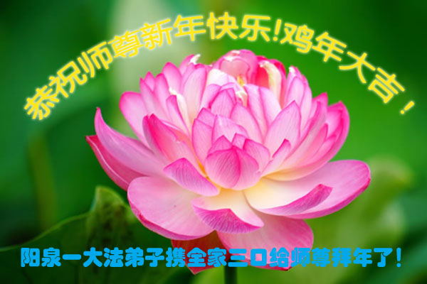 山西省阳泉一大法弟子携全家三口恭祝师尊新年快乐!