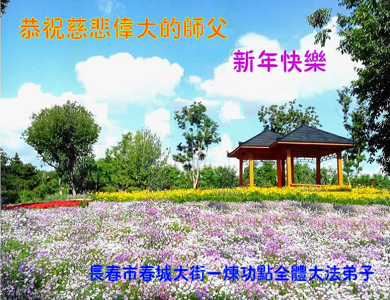 吉林省长春春城大街一炼功点全体大法弟子恭祝慈悲伟大的师父新年快乐!