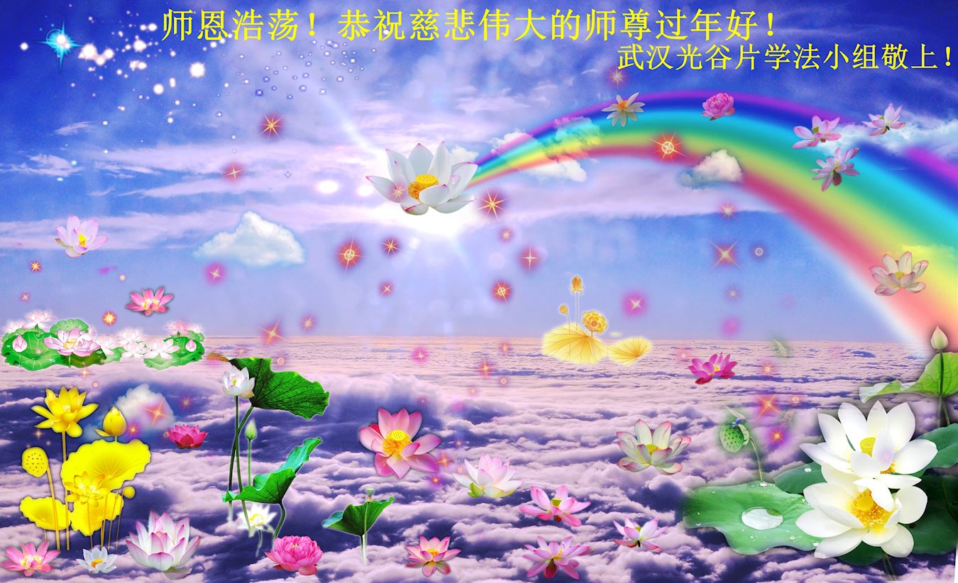 师父过年好!师父为弟子操劳您辛苦了!武汉光谷片学法小组跪拜叩谢师父慈悲救度之恩!弟子谨记师父教诲勇猛精進,做好“三件事”圆满随师还! 湖北武汉市洪山区光谷一学法小组全体大法弟子恭祝慈悲伟大的师尊过年好!