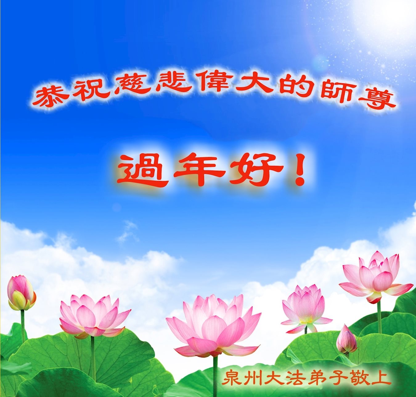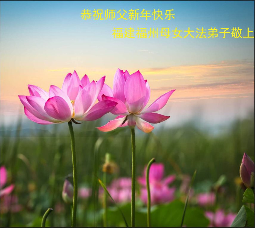 师尊,弟子遥祝您新年快乐!我们牢记您的教诲,正念精進多救人,兑现我们来世的真愿。师父,谢谢您,弟子合十,敬上。 福建省新罗区大法弟子恭祝师尊新年好!