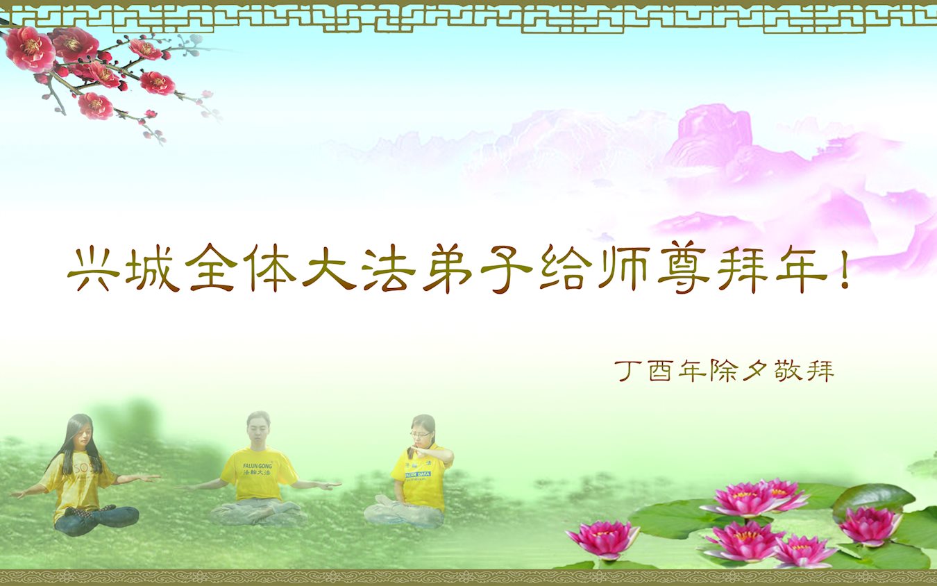 师父您辛苦了!新的一年里,弟子们唯有精進实修,做好三件事,以报师恩。 葫芦岛市兴城全体大法弟子叩谢师恩! 辽宁葫芦岛市兴城全体大法弟子恭祝慈悲伟大的师尊过年好! 师父您辛苦了!新的一年里,弟子们唯有精進实修,做好三件事,以报师恩。 葫芦岛市兴城全体大法弟子叩谢师恩! 辽宁省葫芦岛大法弟子恭祝慈悲伟大的师尊过年好!
