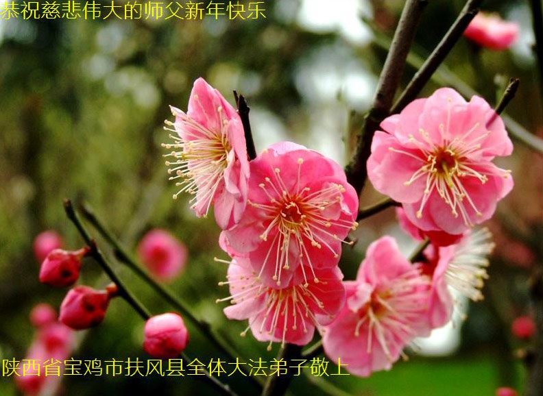 在新年到来之际,恭祝师尊新年快乐! 感谢师尊的慈悲呵护,弟子将在新年里继续精進、多救人! 叩谢师尊! 陕西省宝鸡市扶风县全体大法弟子恭祝慈悲伟大的师父新年快乐!