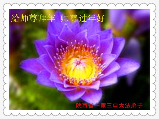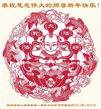 陕西省宝鸡市岐山县蔡家坡一青年大法弟子给慈悲伟大的师尊拜年:恭祝师尊新年好!弟子合十!叩谢恩师! 陕西省延安市全体大法弟子恭祝师尊过年快乐!