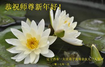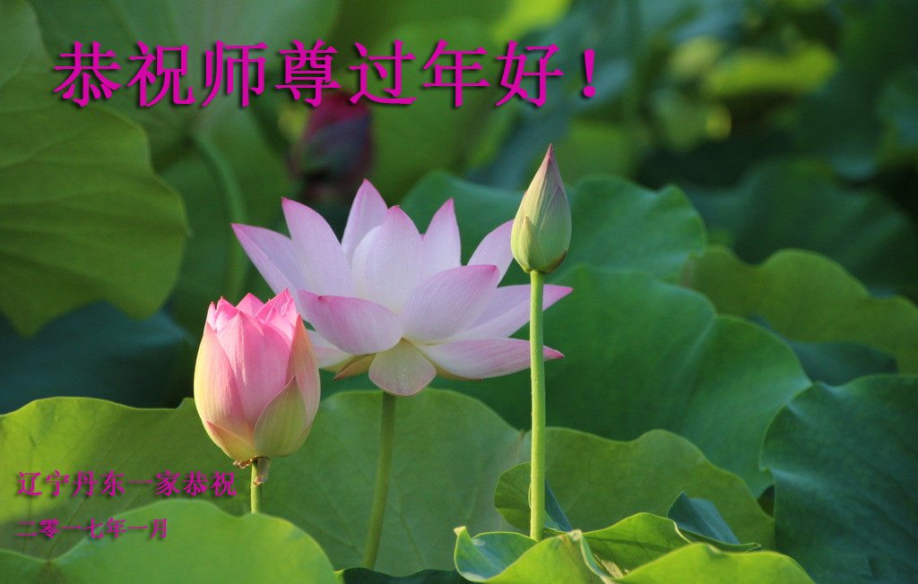 辽宁丹东一大法弟子全家恭祝师尊新年好!