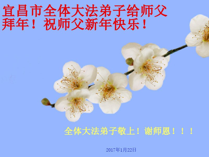 感谢慈悲伟大师尊的慈悲苦度,努力做好三件事,让师父少操心。 湖北省宜昌市大法弟子给师父拜年!祝师父新年快乐!