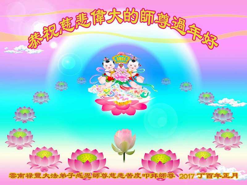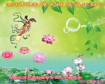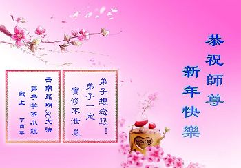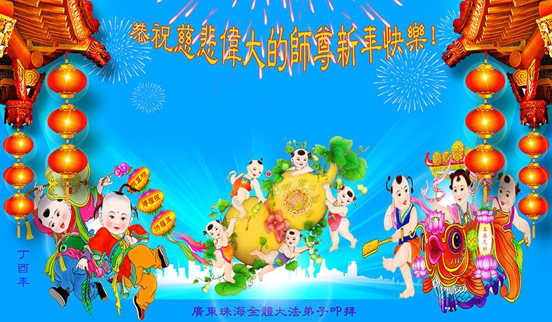 师父您好!师父您辛苦了! 让泪水渗入土中 溶入江河湖泊 穿越千山万水 带去弟子对师父您 深深的祝愿 广东珠海大法弟子恭祝师尊新年快乐!