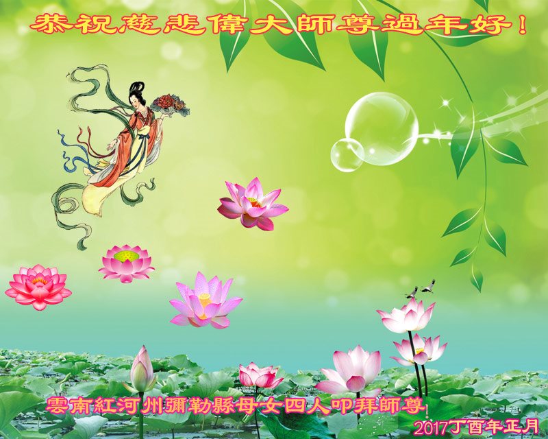 云南红河州弥勒县母女四人恭祝师尊过年好!
