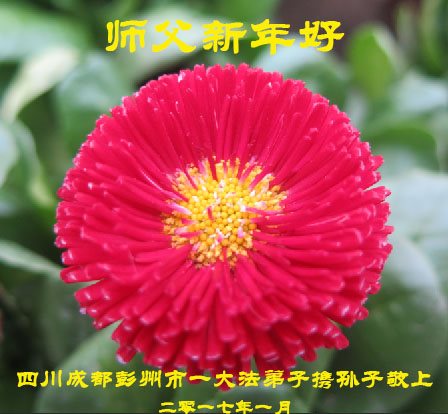 四川省成都市彭州市一大法弟子携孙子恭祝师父新年快乐!