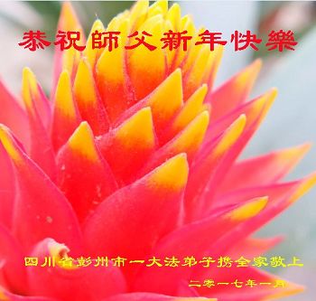 四川省成都市彭州市一大法弟子携全家恭祝师父新年快乐!