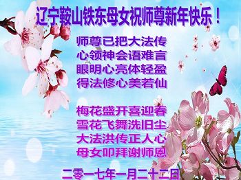 辽宁鞍山铁东母女大法弟子恭祝师尊新年快乐!