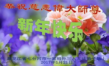 黑龙江七台河市一家祖孙三人大法弟子恭祝师尊新年快乐!