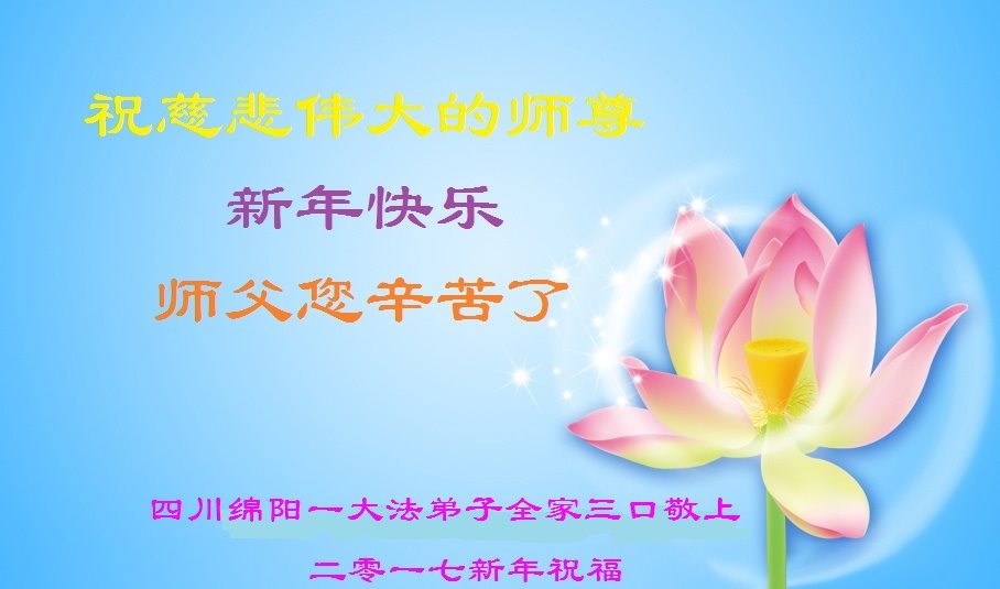 四川绵阳一大法弟子全家三口恭祝师尊新年快乐!