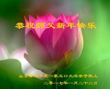 山东青岛一家五口大法弟子恭祝师父新年快乐!