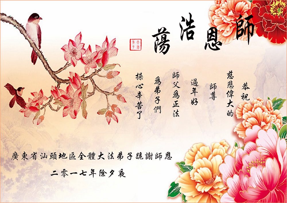 广东省汕头地区全体大法弟子恭祝师父过年好!师恩浩荡!