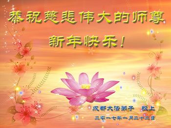 四川成都大法弟子恭祝慈悲伟大的师尊新年快乐!