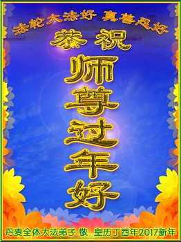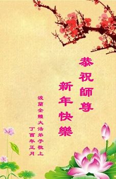 【明慧网二零一七年一月二十七日】法轮大法洪传世界,恩泽四方,不仅给东西方修炼人带来身体健康,真善忍的法理更洗涤修炼者的心灵。二零一七年中国传统新年来临之际,来自欧洲法国、瑞典、丹麦、波兰、匈牙利、捷克和斯洛伐克、斯洛文尼亚、摩尔多瓦、爱尔兰、英国、德国与荷兰的十二个国家的法轮功修炼者,怀着对李洪志师父的感恩,通过明慧网发来给师父的新年贺词、贺卡,也表达了他们希望在新的一年中,牢记师尊的教诲,修好自己,做好三件事,回报师尊的慈悲苦度! 法国全体大法弟子恭祝慈悲伟大的师尊过年好!