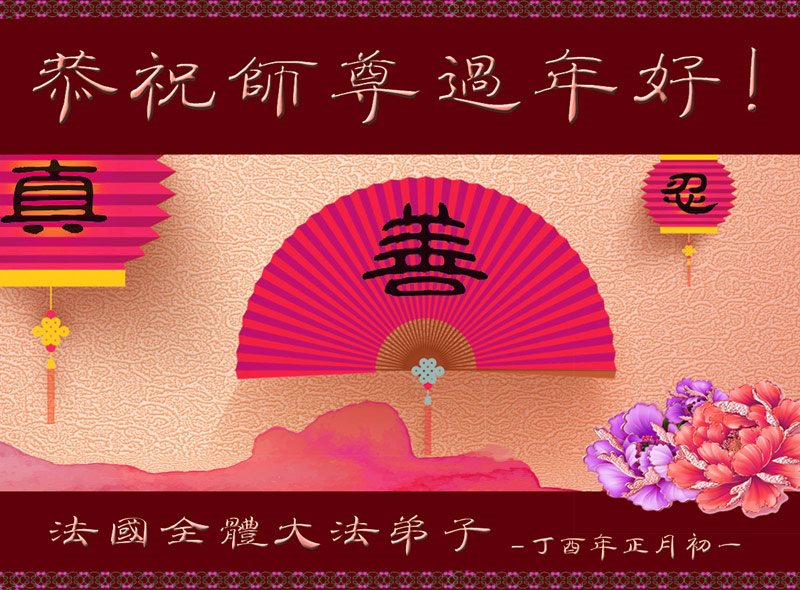在法国的大陆大法弟子恭祝慈悲伟大的师尊过年好!