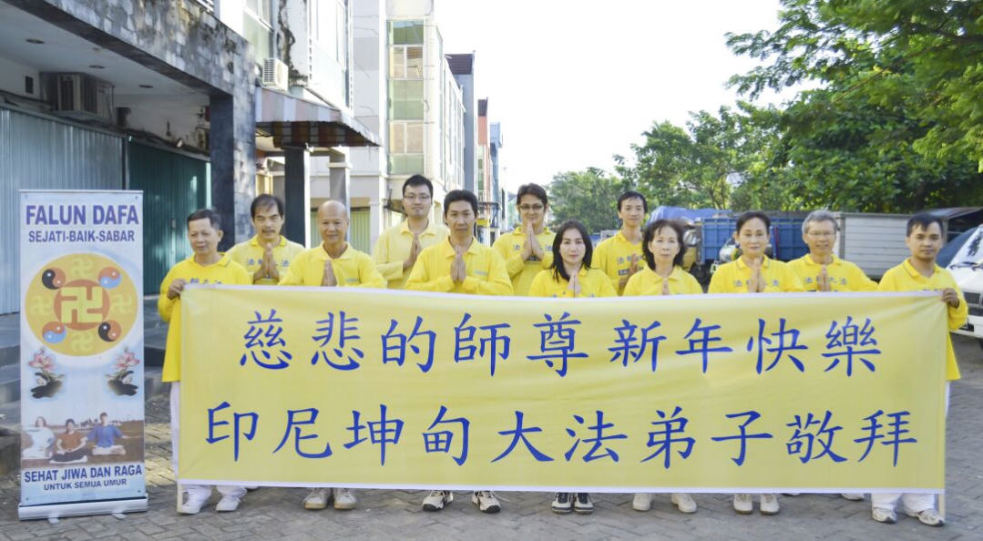 弟子们一定越最后,越精進! 印度尼西亚地区大陆来的大法弟子恭祝师尊过年快乐! 皇历腊月二十七